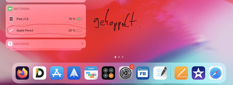 3. Stift ist gekoppelt. (Auf dem Homescreen ganz nach links navigieren um den Akkustandes Stiftes einzusehen.)