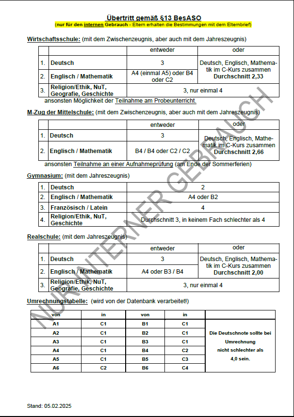 Übertrittsbestimmungen